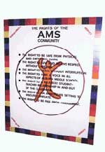 With the principal's permission, Team Harmony will place the Rights of the AMS Community on aprominent wall in the school's entry hall in December 1999 so that all who enter our school will see the commitment our students have to the issues of tolerance and community.