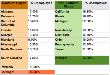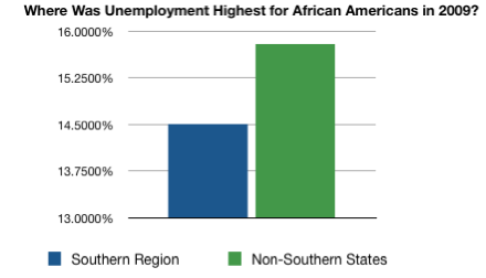 In 2009, unemployment seems highest for African Americans living in the Southern region.