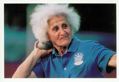 On the back of the card, the young woman is identified as weightlifter Cheryl Haworth, an Olympic bronze medalist. "If you saw Haworth in street clothes," the card asks, "would you think she was an athlete?" And, "Is there a difference between the way you expect a female athlete to look and a male athlete to look?"