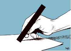 In this cartoon, the black bar is covering the pen as someone is writing. What statement is the artist trying to make?