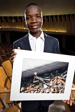 He pauses at the desk of Aminata Sawyer, a 16-year-old from Liberia, as she clicks to an image of her own face, partly masked by a candle flame. "When I was in Africa, it was very sad," she says. "I wanted to show that there was no light, but it didn't really work."