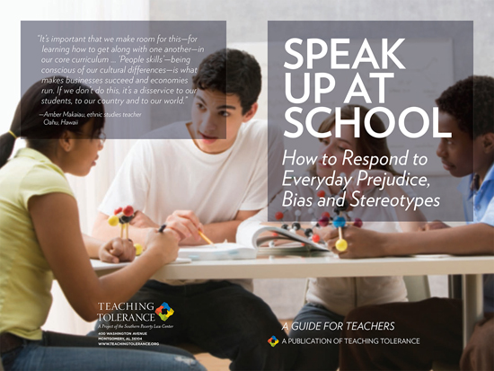 Creating an inclusive learning environment requires leadership and a schoolwide plan, like the kind laid out in Responding to Hate and Bias. But it also requires the work of dedicated individuals throughout the building, day in and day out. That’s where Speak Up at School comes in. This booklet is written for individuals. It provides advice for responding to verbal slurs, racist jokes or disrespectful remarks that can be heard anywhere in school and from anyone.