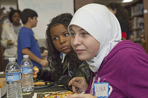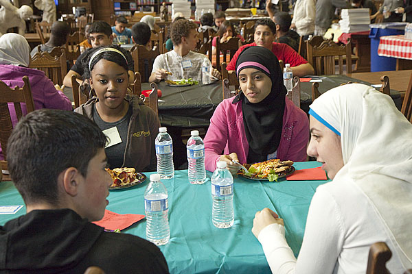 We targeted 150 ninth-grade students and divided them into three lunch periods (50 students per lunch period). They were hand-picked from among the following subgroups: blacks, whites, Lebanese, Yemenis, Iraqis, jocks, band members, cheerleaders as well as students in special education and bilingual classes.
